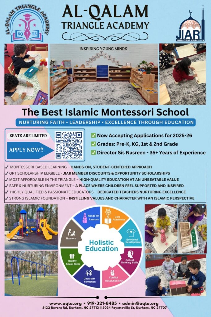 At Al-Qalam Triangle Academy, we envision confident and inspired young Muslims who embody a lifelong passion for learning, rooted in Islamic values, knowledge, and character.